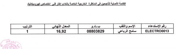 القائمة النهائية للمترشحين الناجحين في مناظرة